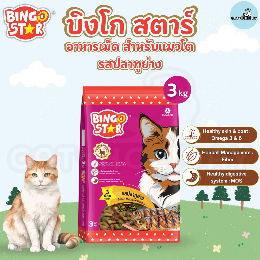 ![[ ถุง 3kg ] อาหารแมว Bingo Star บิงโกสตาร์ อาหารเม็ดแมว 3 มิกซ์ รสปลาทูย่าง สำหรับแมวโต - Image 3](https://catholiday.shop/wp-content/uploads/2026/01/7.png)