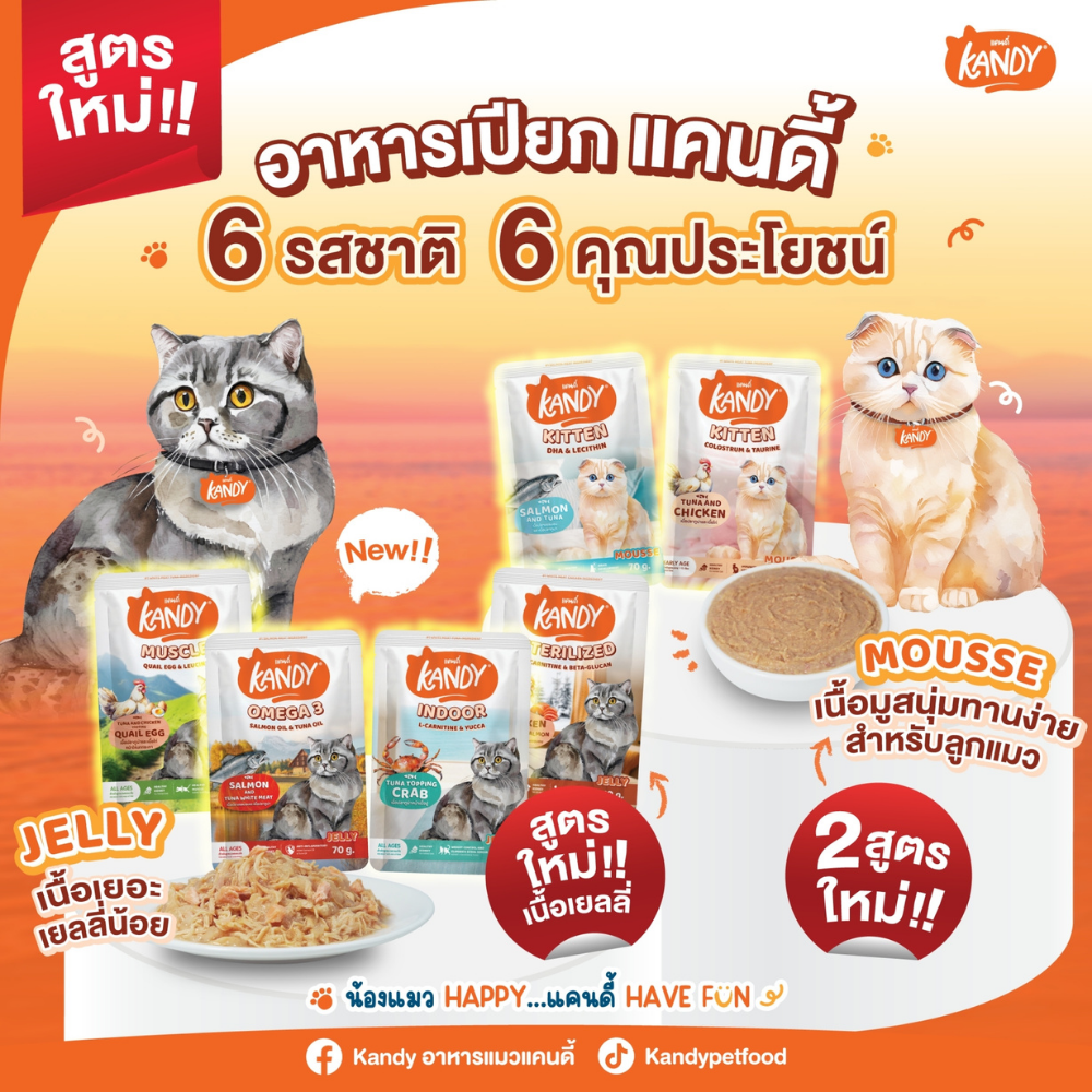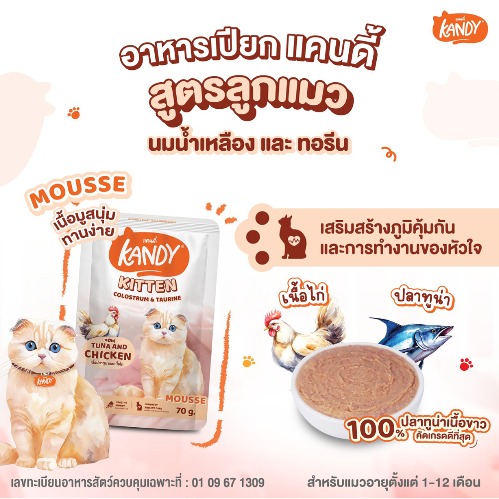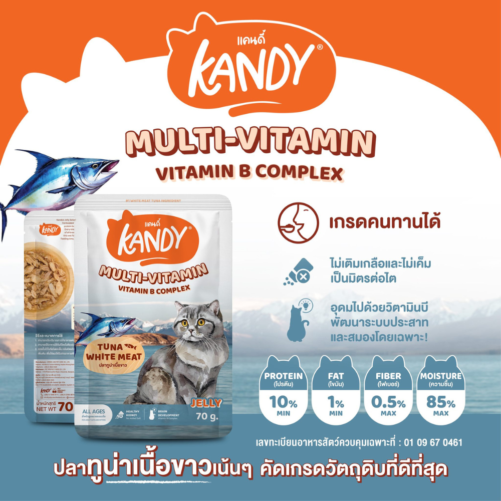 (ยกโหล 12 ซอง) KANDY อาหารเปียกแมว แคนดี้ ผลิตจากปลาทูน่าเนื้อขาว เนื้อเยอะ ทานง่าย สารอาหารครบถ้วน