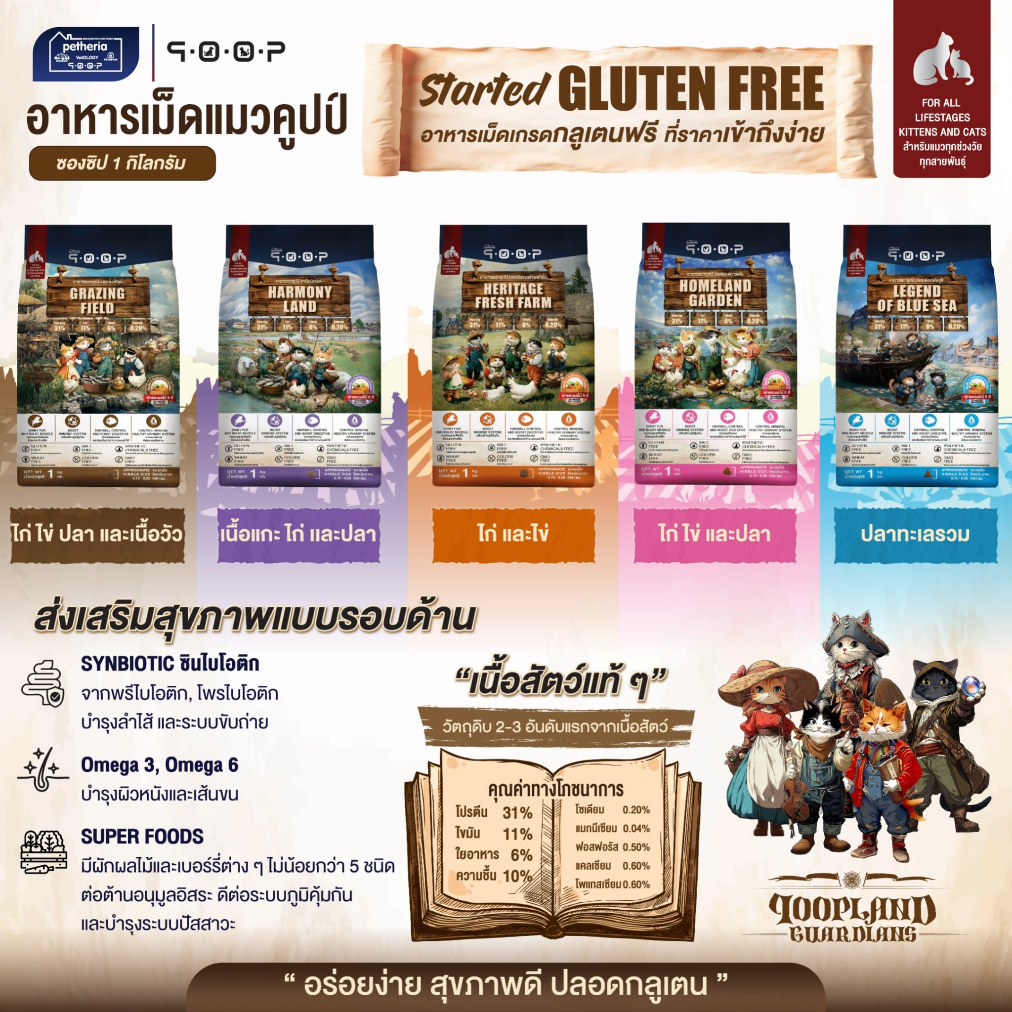 Petheria QOOP อาหารเม็ดแมวคูปป์ ” อร่อยง่าย สุขภาพดี ปลอดกลูเตน ” Gluten Free