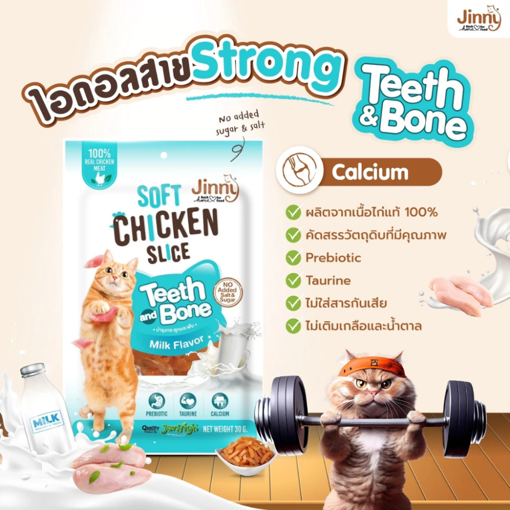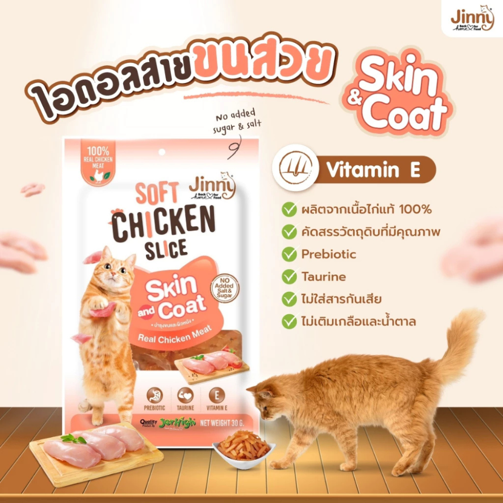 [ 30กรัม ] Jinny จินนี่ ไก่นิ่มสไลด์ ขนมแมว ผลิตจากเนื้อไก่แท้ๆ ไม่ผสมแป้ง ไม่เติมเกลือ ไม่เติมน้ำตาล