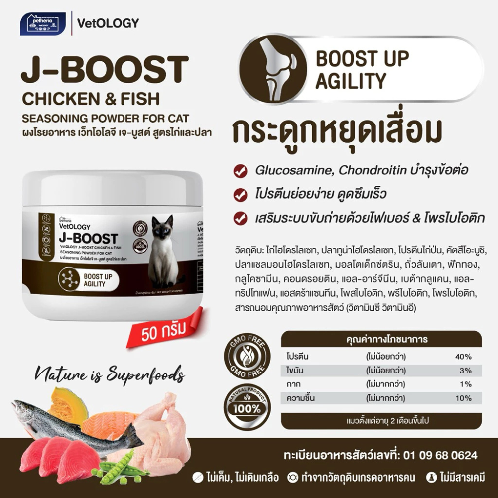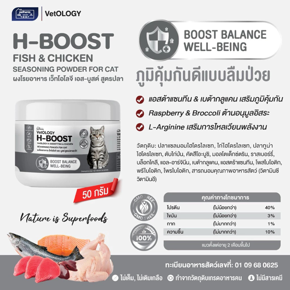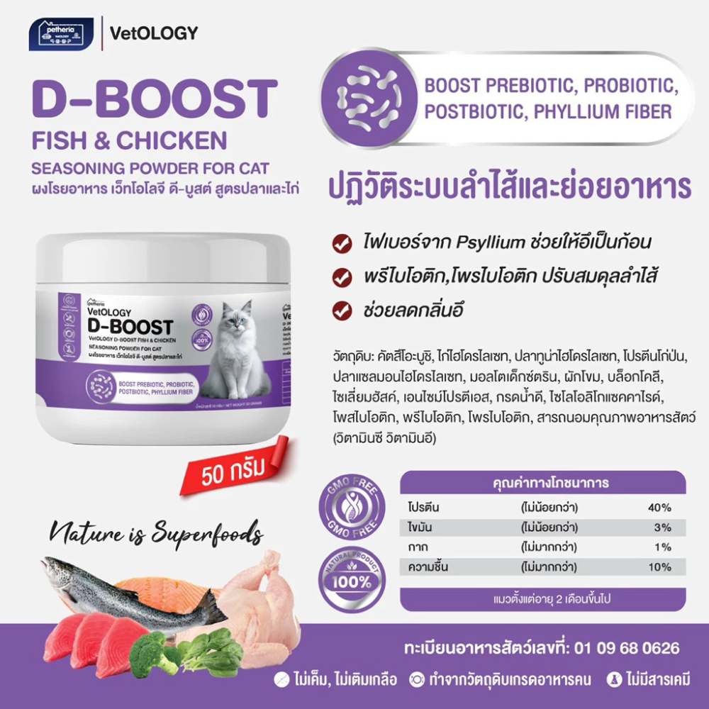Petheria ผงโรยอาหารแมว VetOLOGY สำหรับแมวตั้งแต่อายุ 2 เดือนขึ้นไป ขนาด 50g