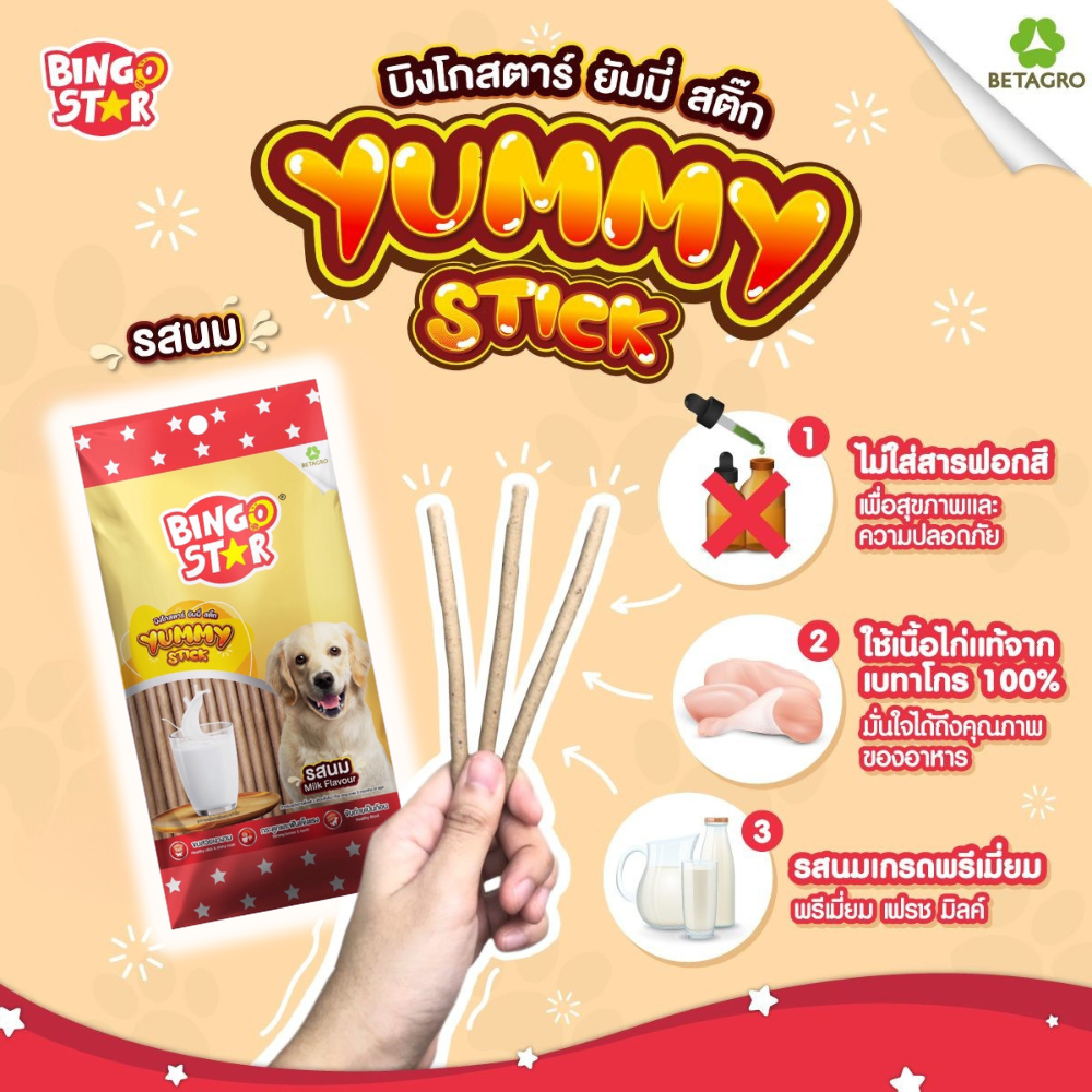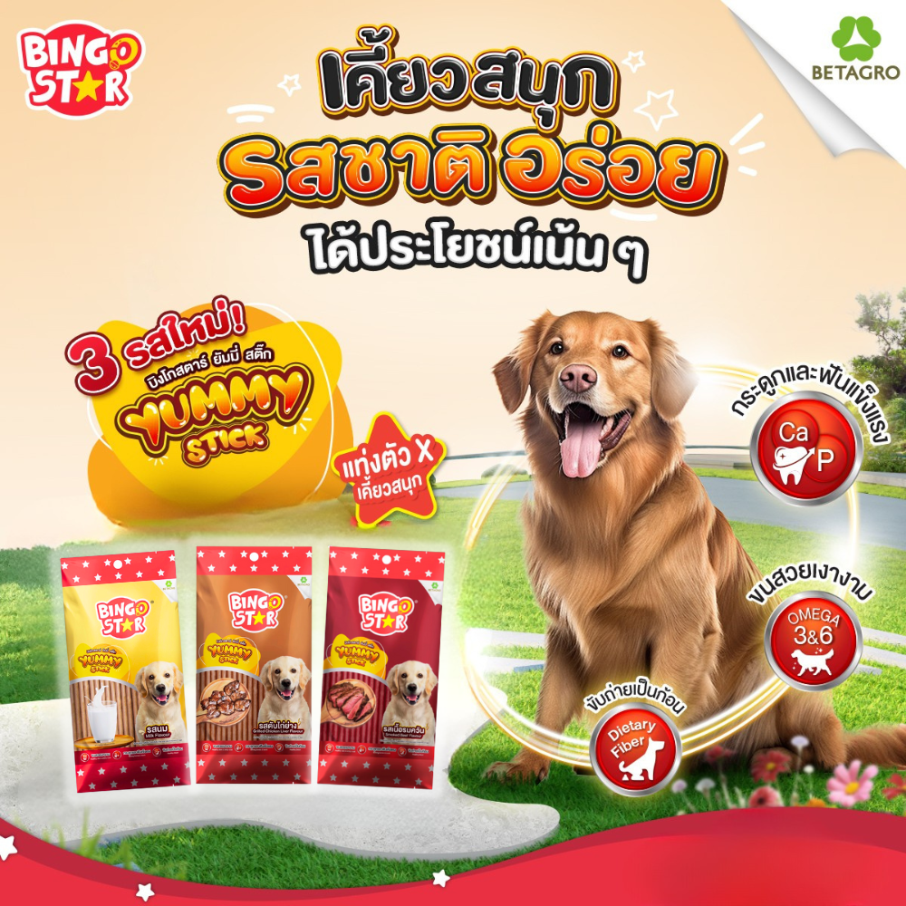 ขนมสุนัข Bingo Star Yummy Stick บิงโกสตาร์ยัมมี่สติ๊ก มีให้เลือกหลายรสชาติ