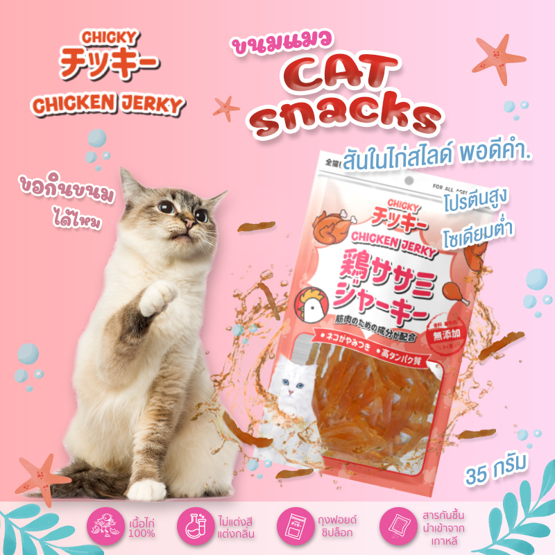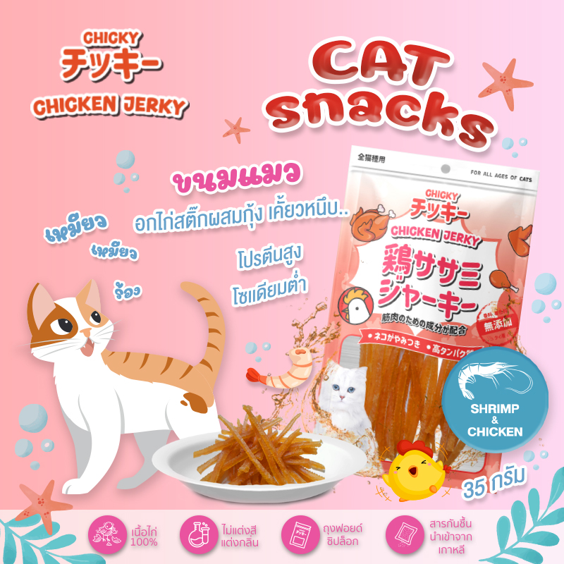 CatHoliday [ 30g-45g ] ขนมแมว Chicky Chicken Jerky คัดสรรเนื้อแท้ โปรตีนสูง ไขมันต่ำ ไม่แต่งสีแต่งกลิ่น